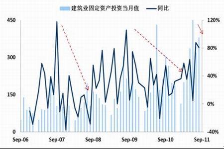 (二)建筑业固定资产投资后期仍将回落。7月建筑业固定资产投资增速达到87.91%,这一增速已经达到历史高点,因此8月增速回落至80.49%,按照历史走势,后期仍将逐步回落。